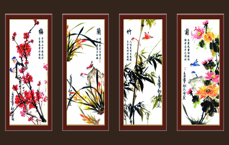 TRANH CANVAS TỨ QUÝ ĐÀO LAN TRÚC CÚC 38