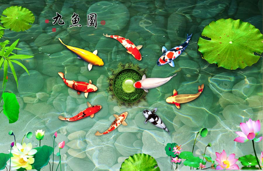 Tranh canvas phong thủy Cửu ngư - cá chép |