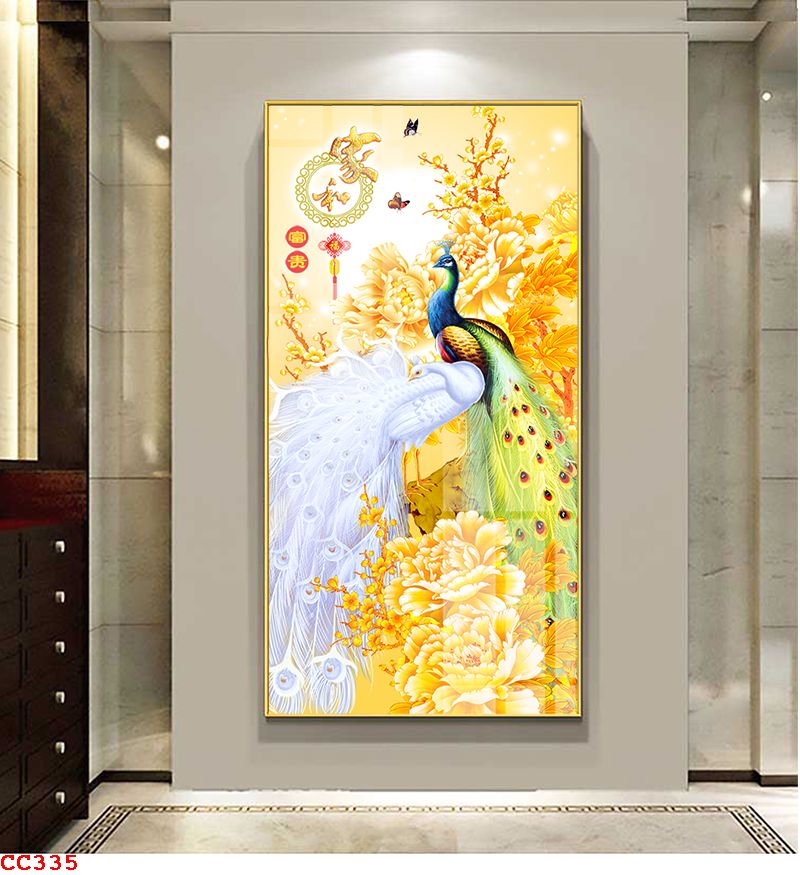 PHU THÊ VIÊN MÃN 335 là một trong những mẫu tranh chim công đẹp