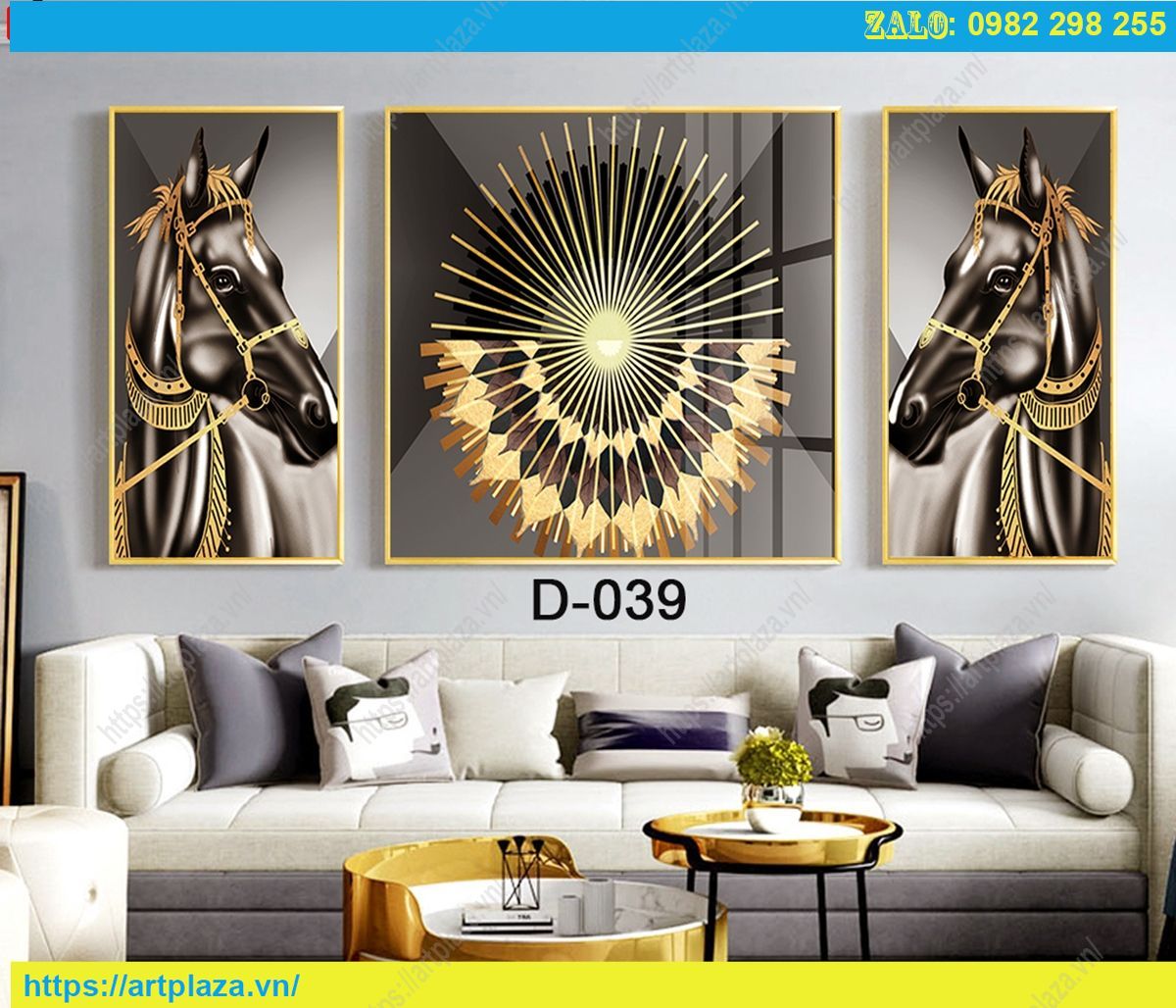 Tranh tráng gương bộ 3 hiện đại 039 là một trong những mẫu tranh mã đáo đẹp
