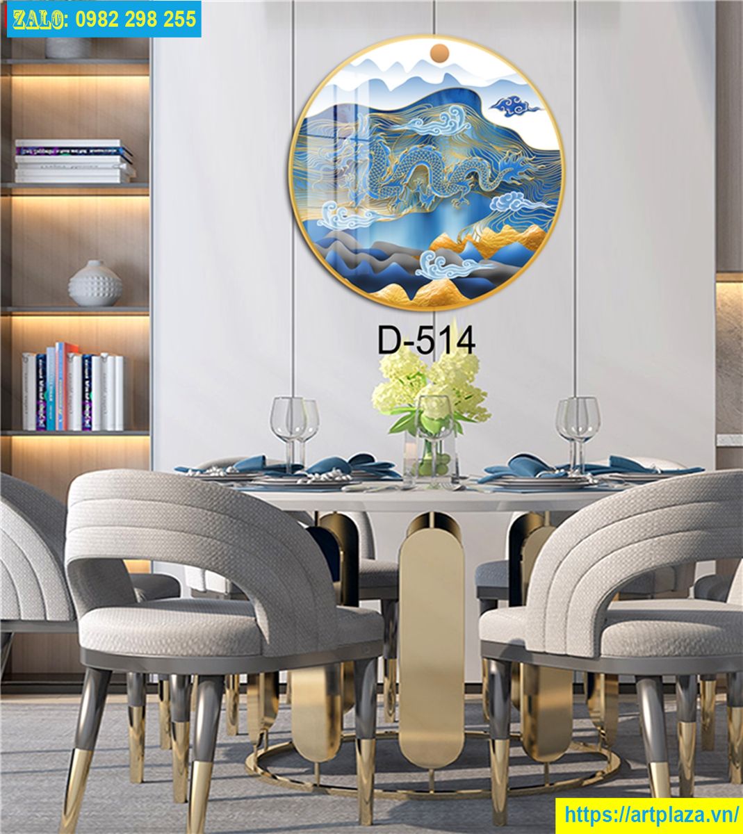 Tranh tráng gương tròn 514 là một trong những mẫu tranh con rồng đẹp