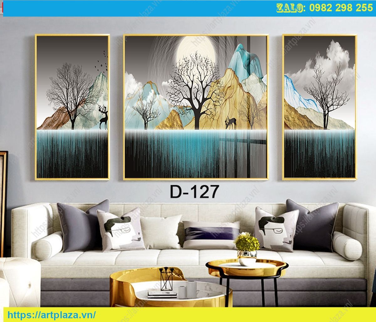 Tranh tráng gương bộ 3 hiện đại 127 là một trong những mẫu tranh phong cảnh đẹp