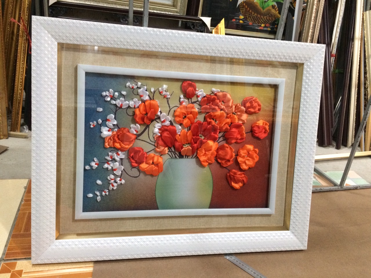 TAGtranh thêu ruy băngtranh thêu lụatranh bình hoa đẹptranh treo tườngkhung tranh