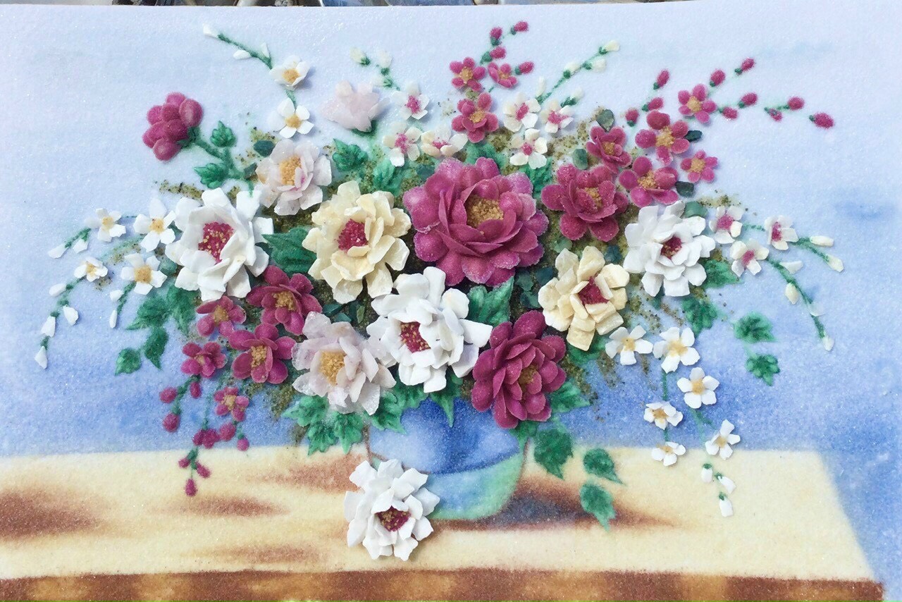 Tranh đá quý bình hoa 1003 là một trong những mẫu tranh bình hoa đẹp