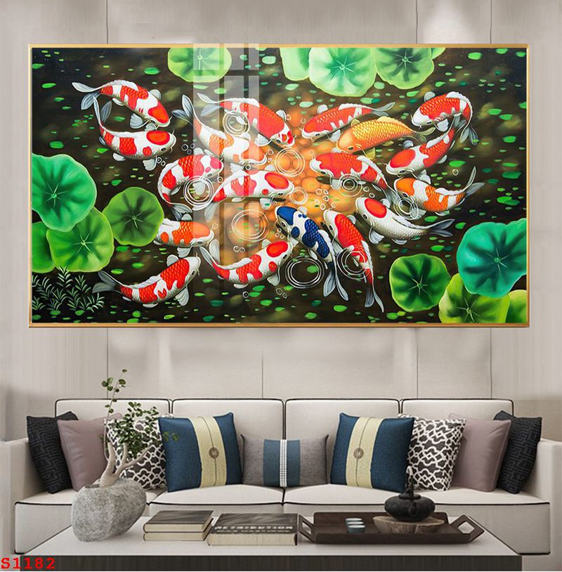 TRANH TRÁNG GƯƠNG PHONG THỦY CÁ CHÉP HOA SEN S1182