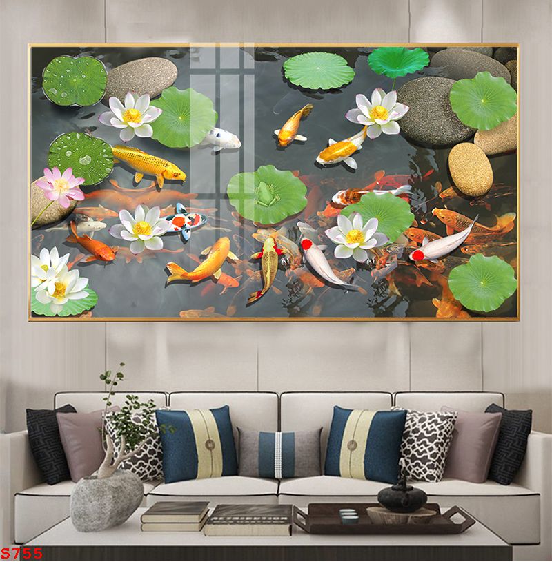 TRANH TRÁNG GƯƠNG PHONG THỦY CÁ CHÉP HOA SEN S755