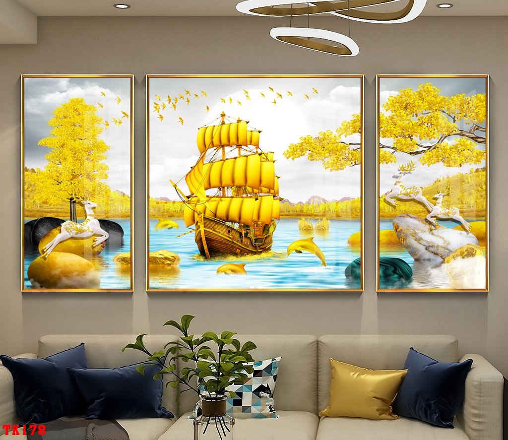 Tranh Tráng Gương Treo Phòng Khách Bộ Ba Tấm Hiện Đại TK178 là mẫu Tranh Tráng Gương treo phòng khách đẹp. Đây cũng là mẫu tranh Thuận Buồm Xuôi Gió mang nhiều ý nghĩa tốt lành: may mắn, thuận lợi, bình an, thăng tiến. Đây được coi là dòng tranh phong thủy.